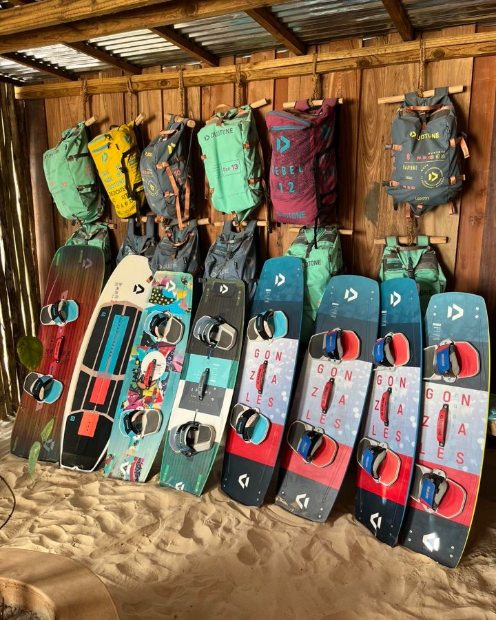 Duotone Pro Center Zanzibar offers a comprehensive range of the latest Duotone kitesurfing equipment, ensuring riders of all levels can enjoy premium gear throughout their stay. From kites and boards to lycras, harnesses, helmets, life jackets, shoes, and more, the center provides everything needed for an exceptional session on the water.