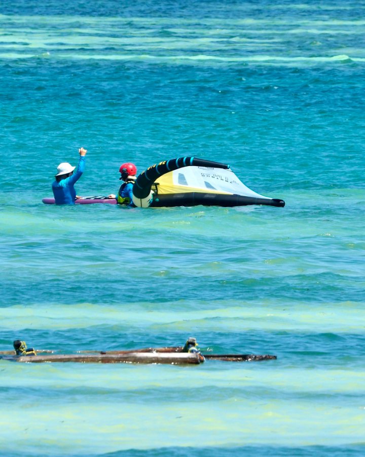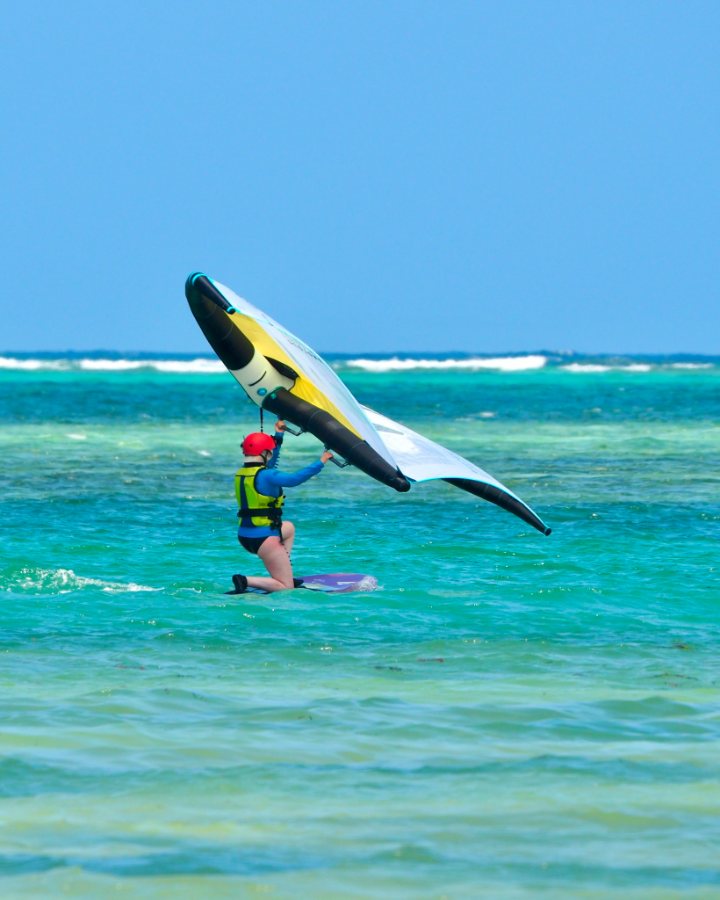 Wing foiling is known for being intuitive and incredibly fun to learn. Combining elements of windsurfing, kite foiling, and surfing, it delivers a unique, floating sensation that appeals to riders of all backgrounds. It also excels in light-wind conditions, making it the perfect complement to Zanzibar’s consistent breezes. To ensure smooth progression, instructors use BbTALKIN waterproof communication systems, allowing real-time guidance during every step of the lesson.